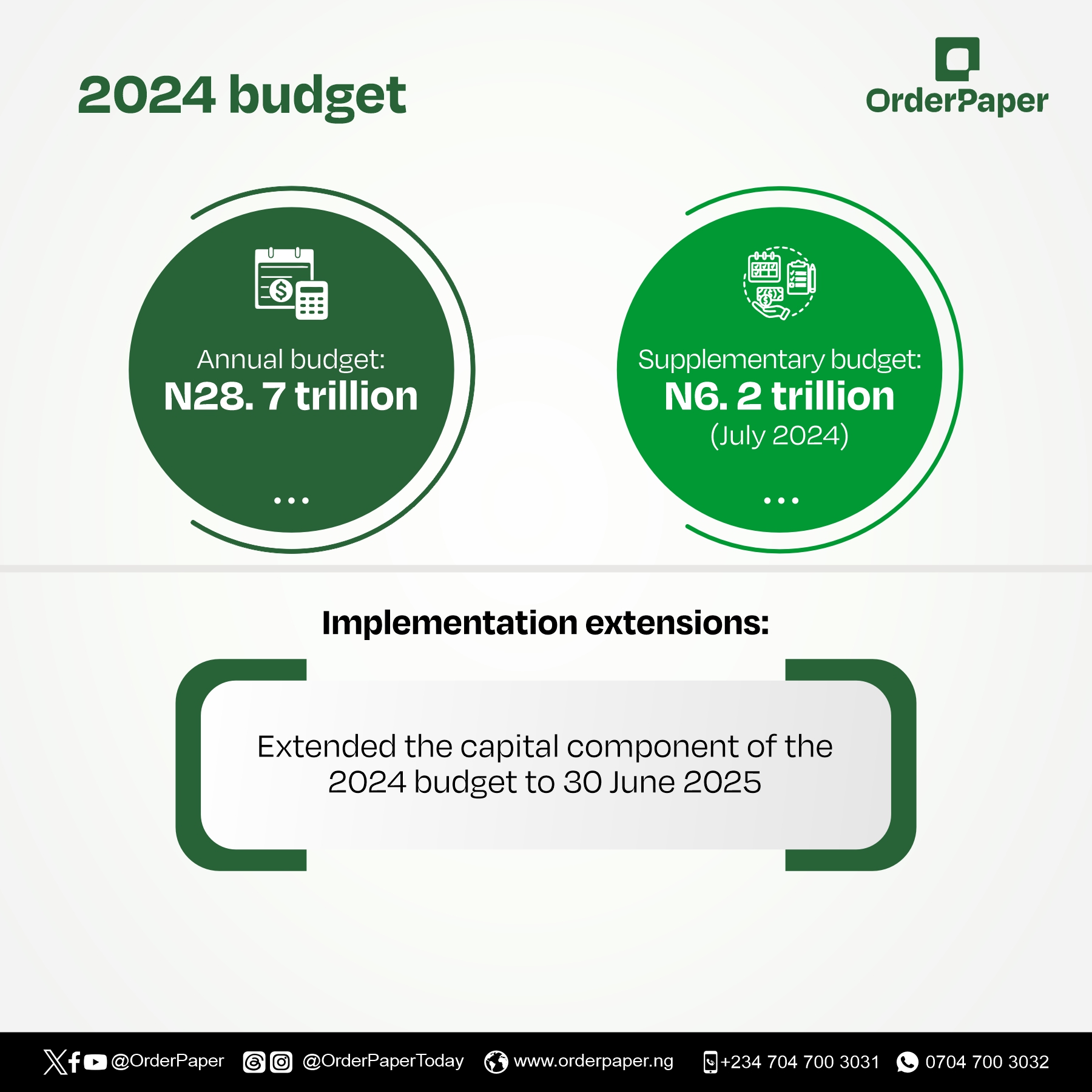 To salvage project implementation and absorb procurement delays, the national assembly again intervened, extending the capital component of the 2024 budget until June 30, 2025.