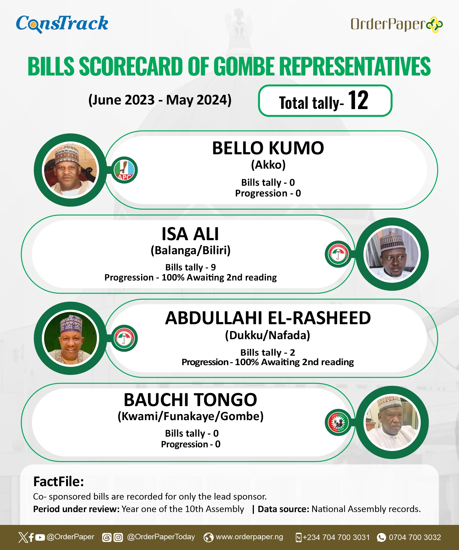 Hon. Ali is currently serving as a member reprresenting Balabga/Biliri Federal Constituency in the 10th Assembly under the platform of the Peoples Democratic Party (PDP).